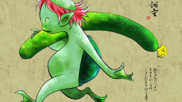 妖怪「パタパタ」です。山や森のどこかからパタパタ…と人が手を叩くような音がする。実はこの小さな妖怪が立てている音だというお話。