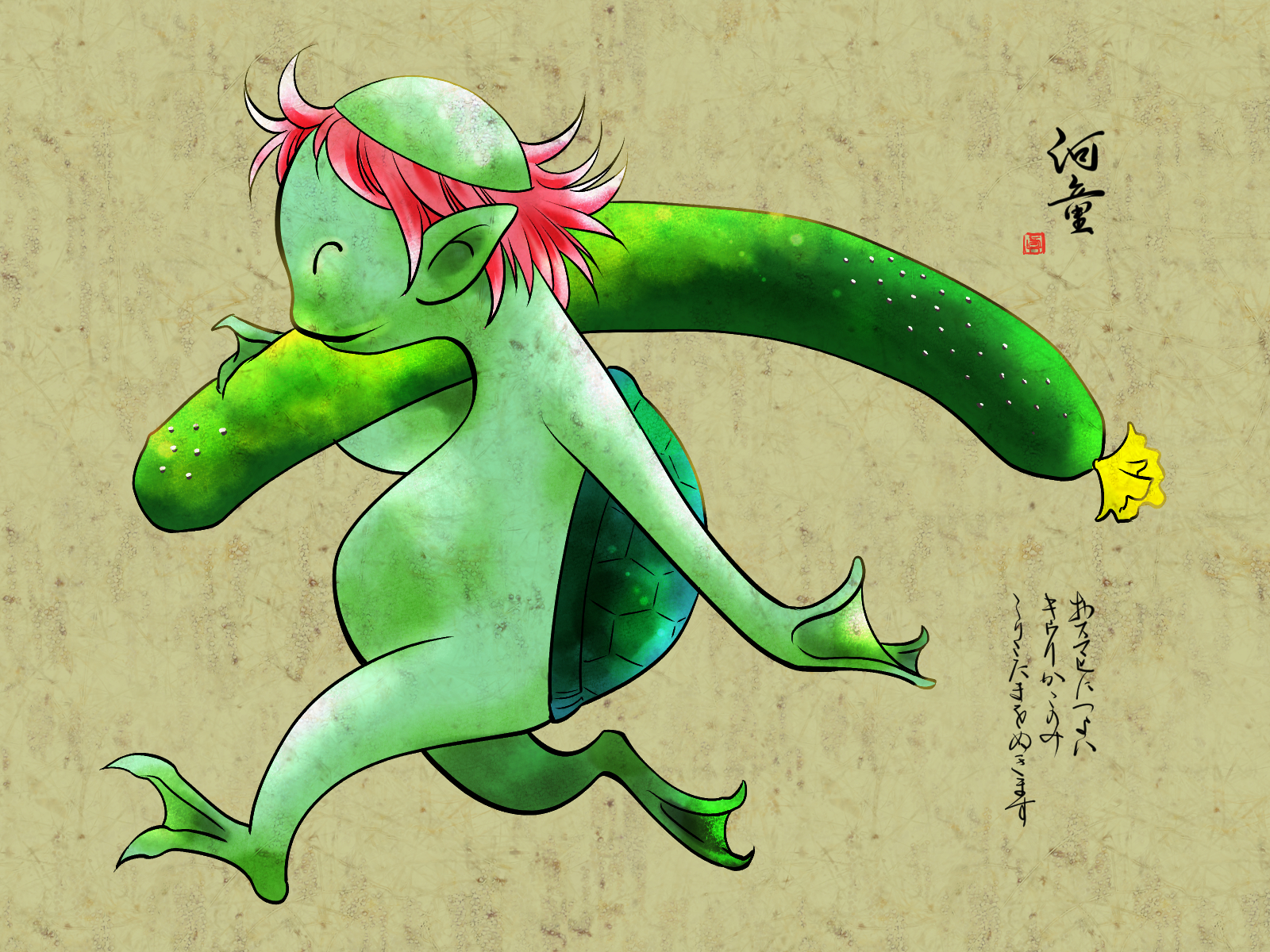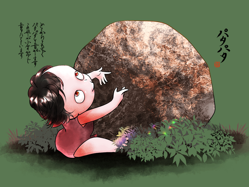 イラスト妖怪「パタパタ」です。山や森のどこかからパタパタ…と人が手を叩くような音がする。実はこの小さな妖怪が立てている音だというお話。